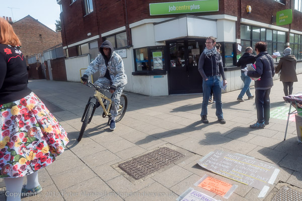 Activists protested at lunchtime outside Tottenham Jobcentre Plus, speaking and handing out leaflets calling for Universal Credit to be scrapped.