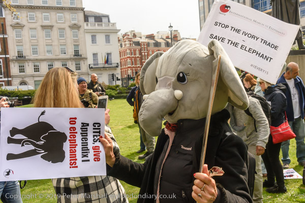 People meet in Cavendish Square to march through London to a rally opposite Downing St as a part of the 2019 Global March for Elephants and Rhinos.