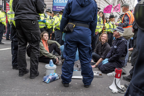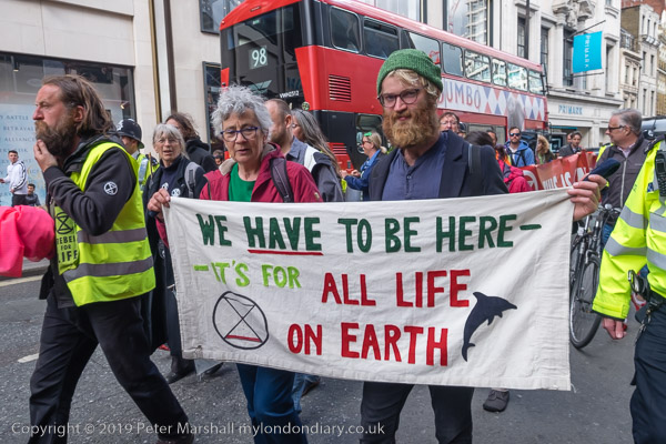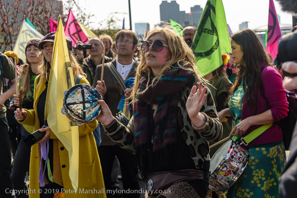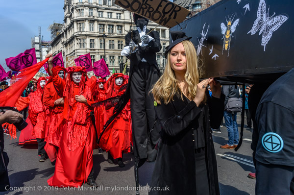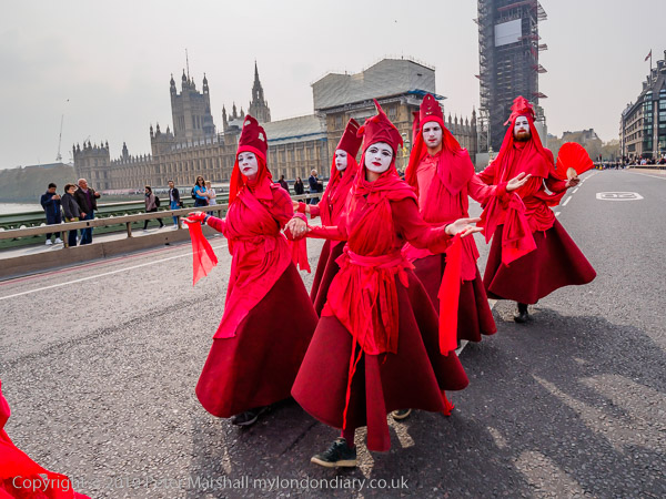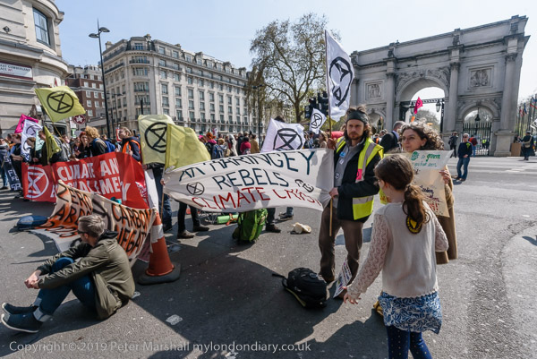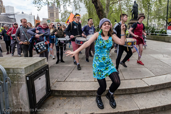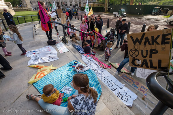 Families from Extinction Rebellion met in Parliament Square to walk to hold a children's party on the steps of the Treasury.