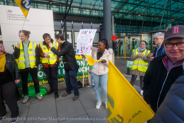 Catering staff at BEIS are on the third day of a 3-day strike. They