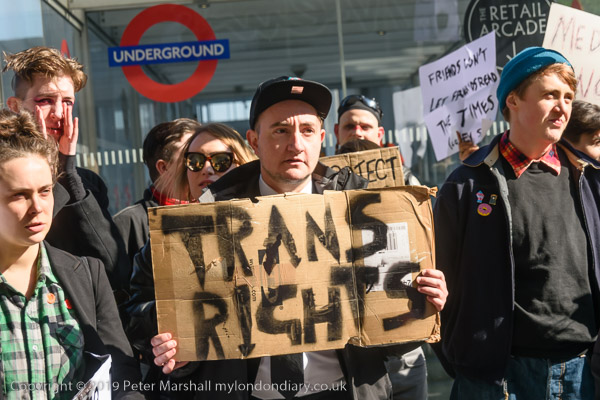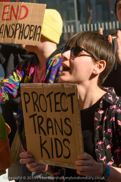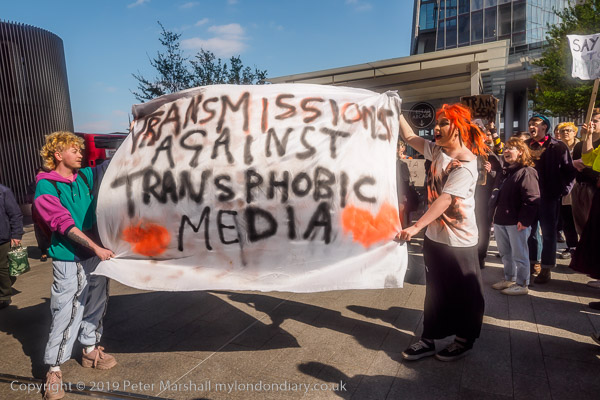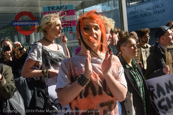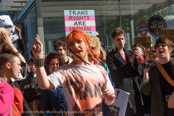 The protest was ofganised by Transmissions, a London-based trans-inclusive