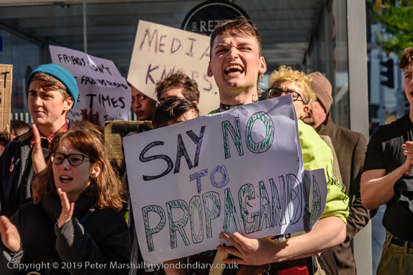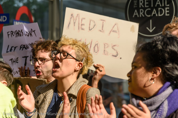 The protesters arrive outside the News offices of the Murdoch newspapers