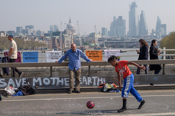 And a kid plays foorball with a man