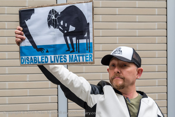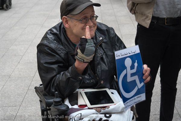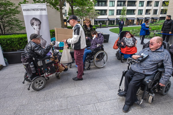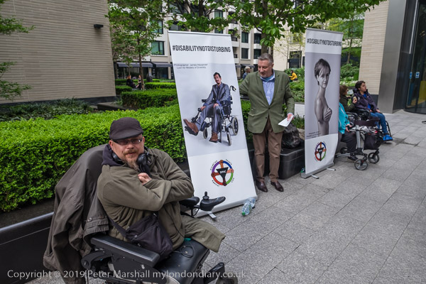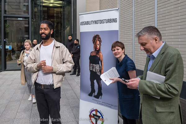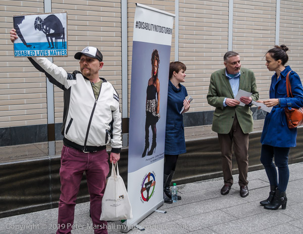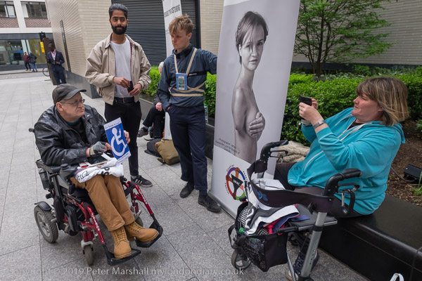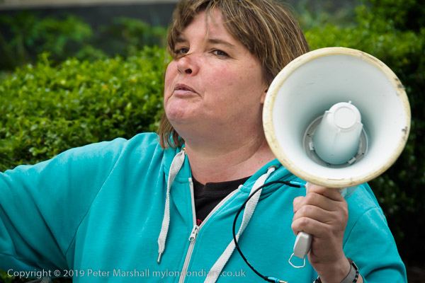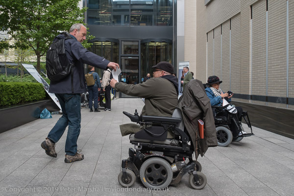 I leave when a woman comes out to talk with the protesters, saying she is the security officer, She does not want to be photographed,