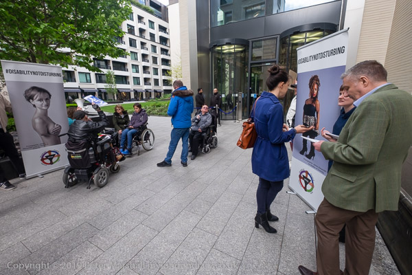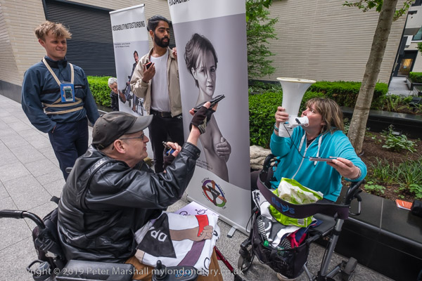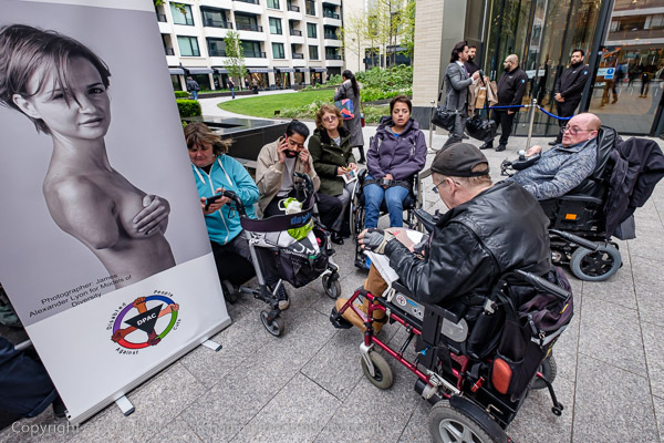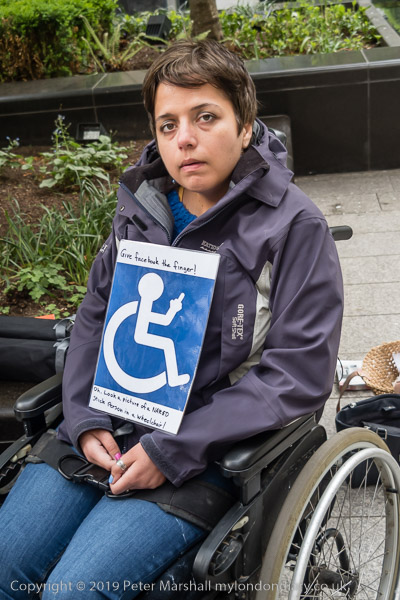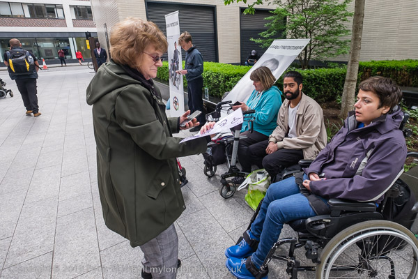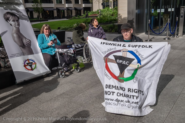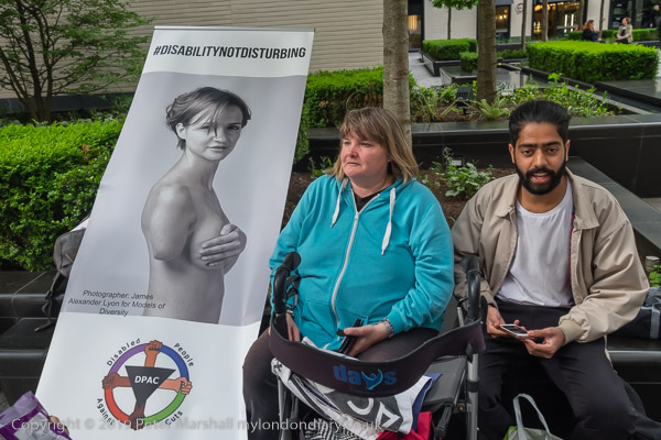 Paula Peters of DPAC sits outside the Facebook HQ in Rathbone Square