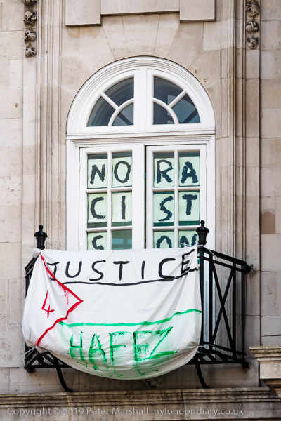 Occupation' and Justice 4 Hafez' In the window 'No Racists on