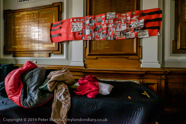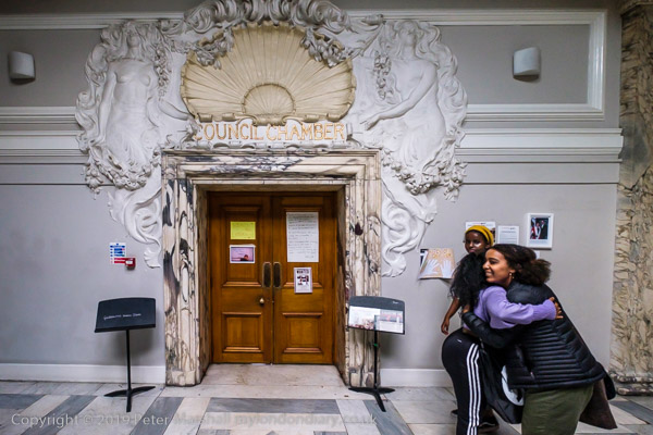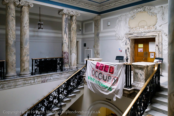 The doorway to the Council Chamber, the main room of the occupation