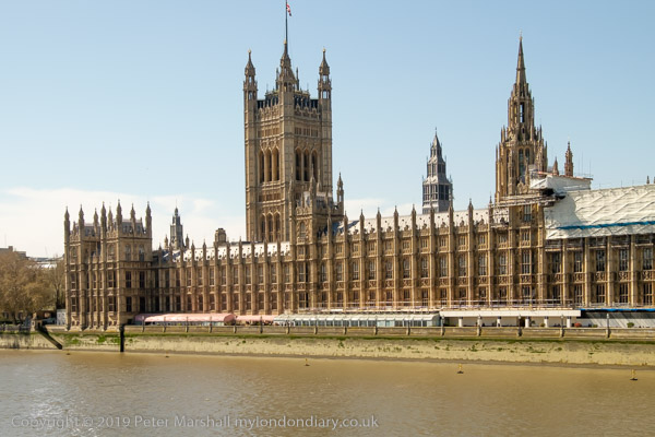 Right: back entrance to Middlesex Guildhall (Supreme Court)