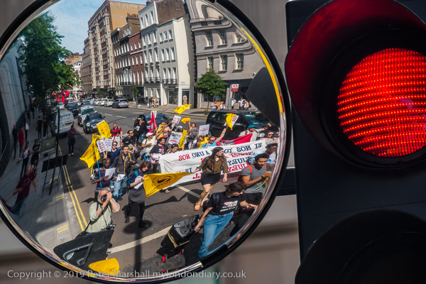 and leads the march as it goes west along Cavendish Place