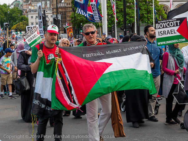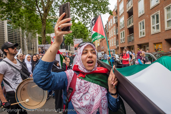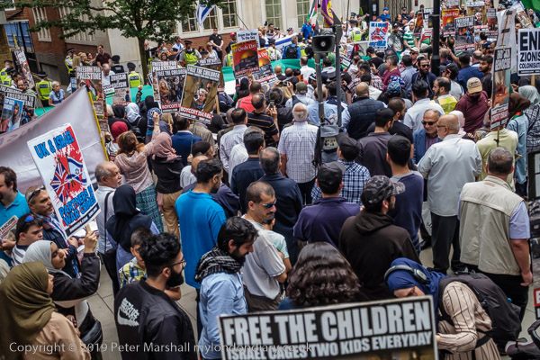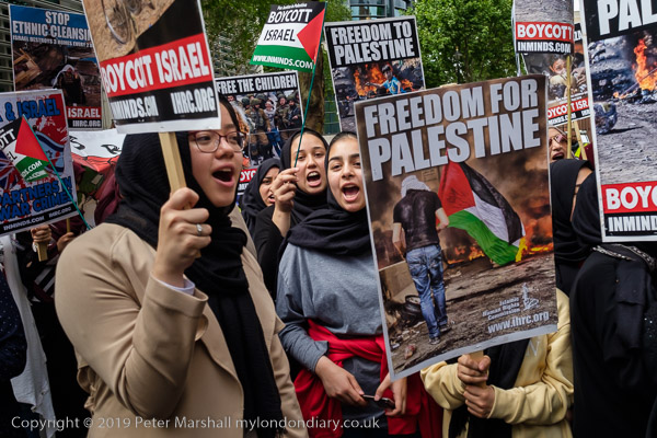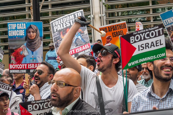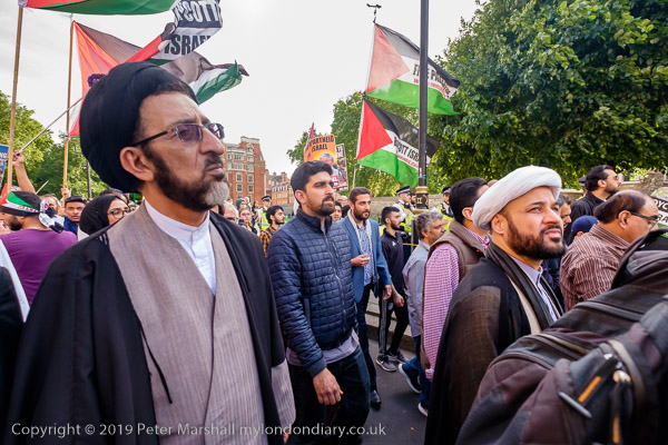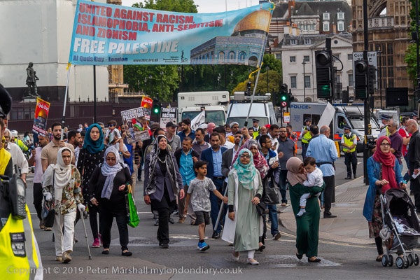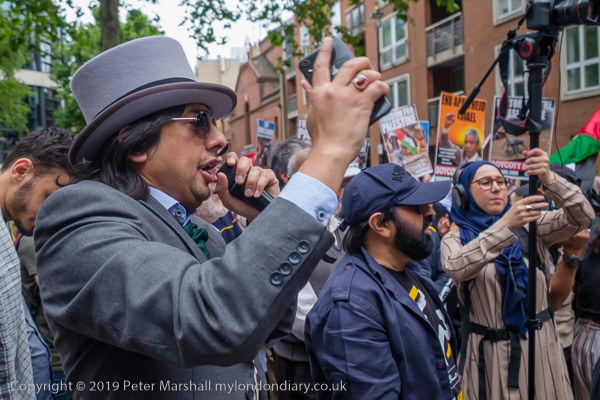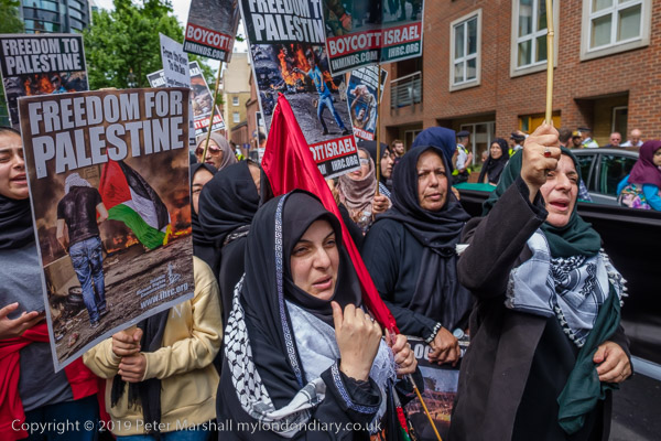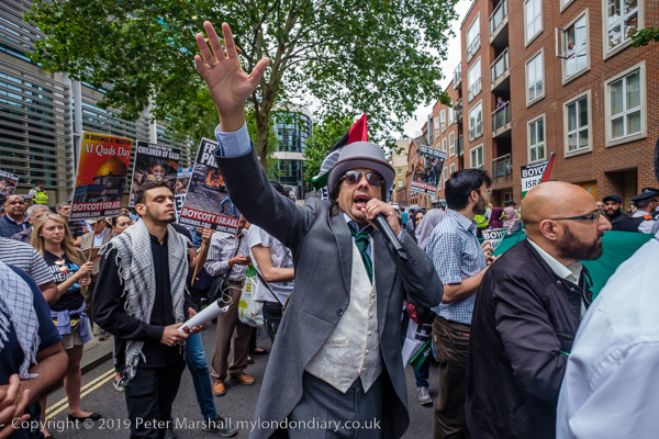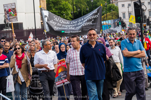 People meet up outside the Home Office for the Al Quds Day march and