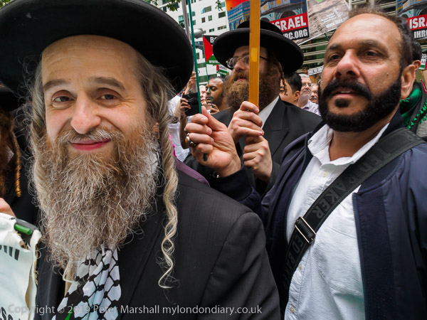 Neturei Karta ultra-orthodox Jews arrive to join in the protest