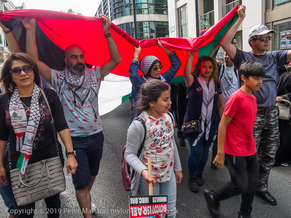 People carry a giant Palestinian flag on the march