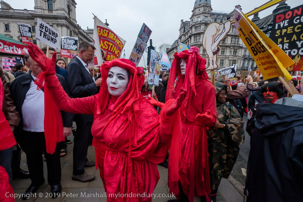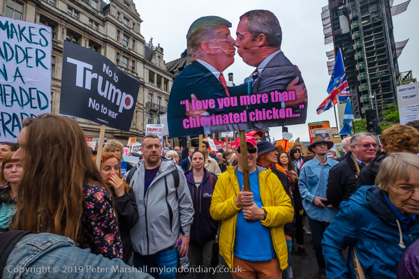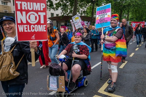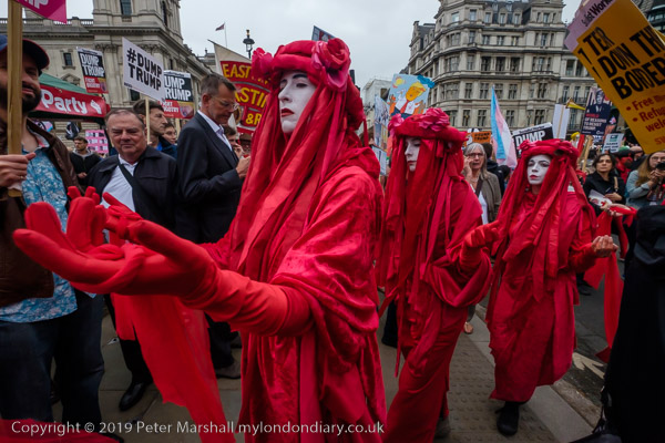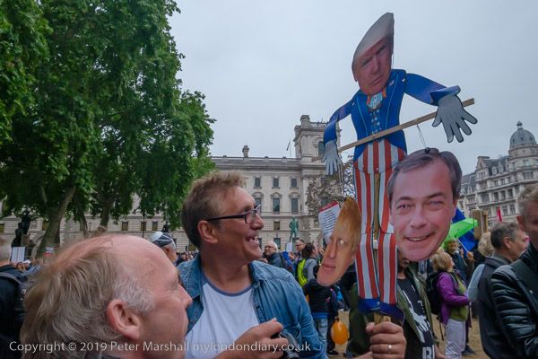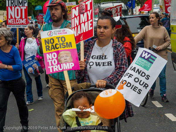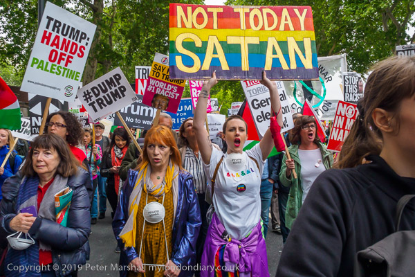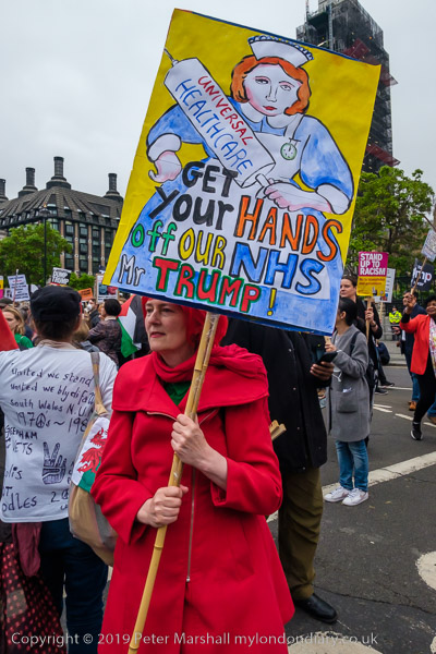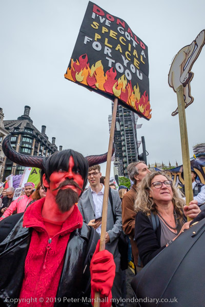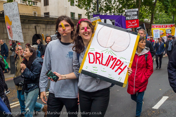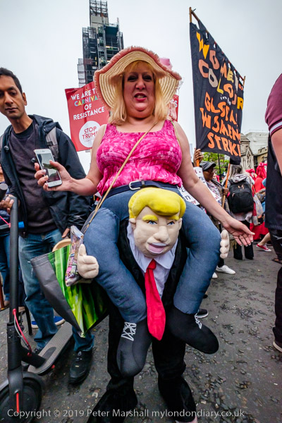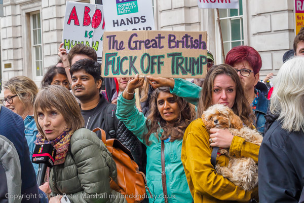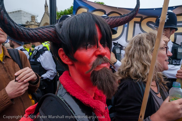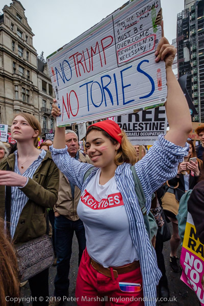 'No Trump, No Tories' and a remarkable costume with a a woman apparently