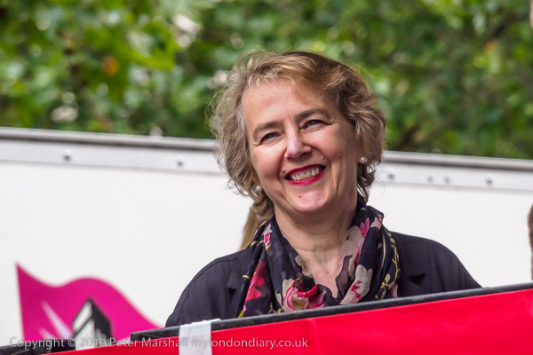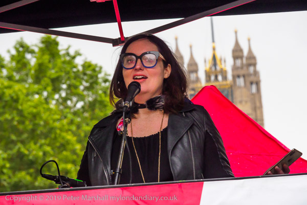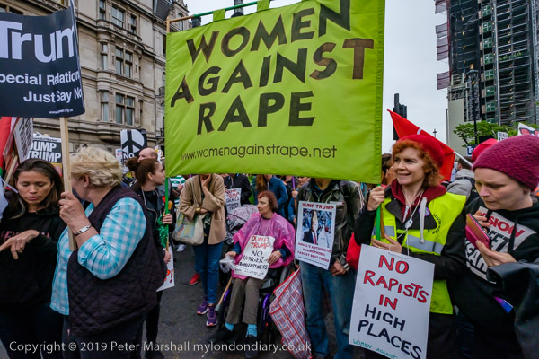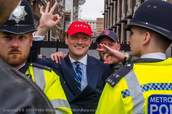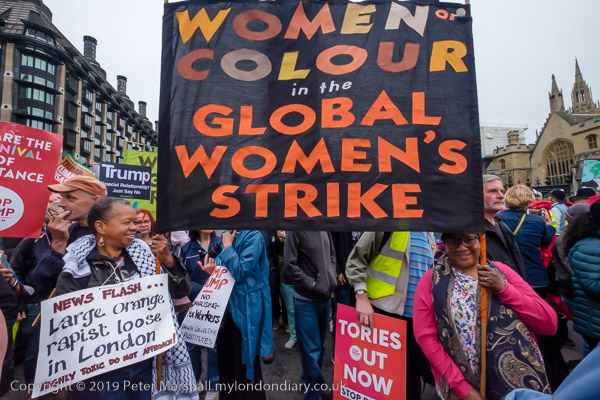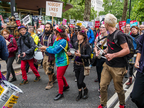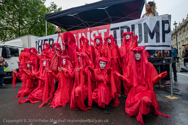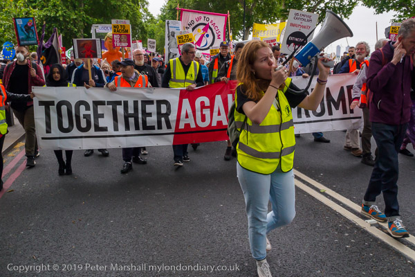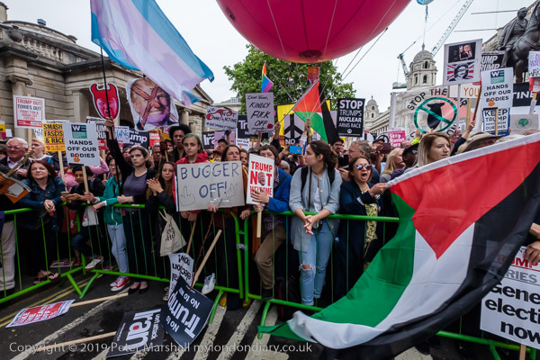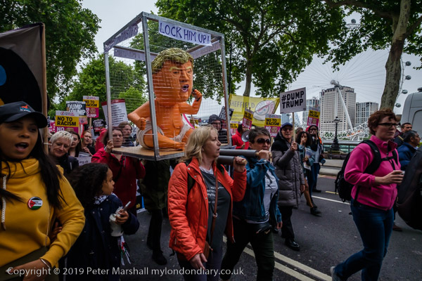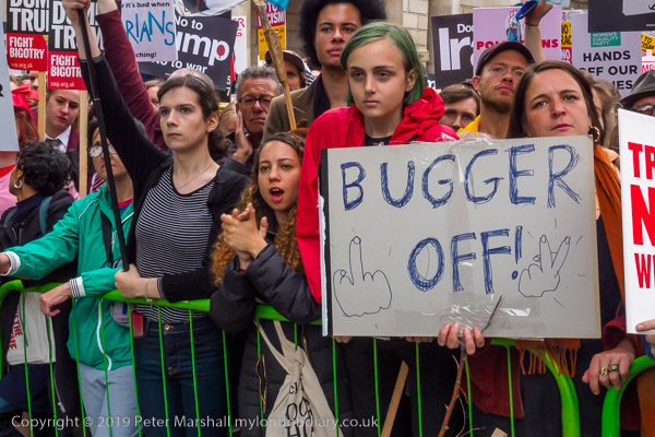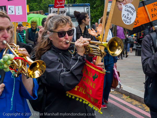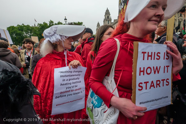 'No Trump, No Tories' and a remarkable costume with a a woman apparently
