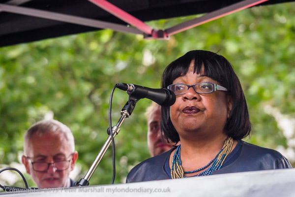 Shadow Home Secretary Diane Abbott, with Jeremy Corbyn in the background