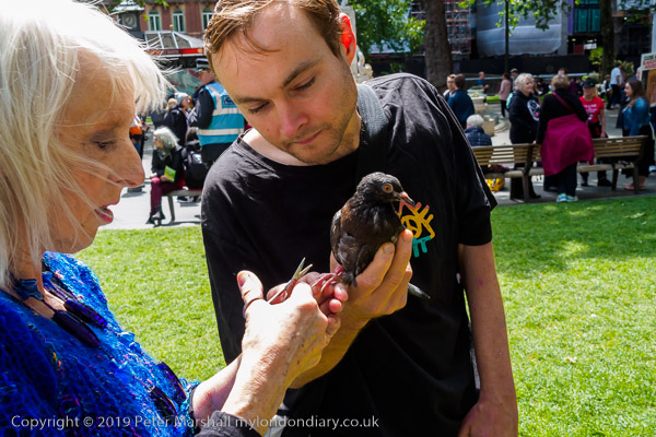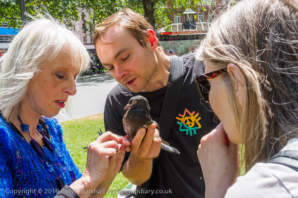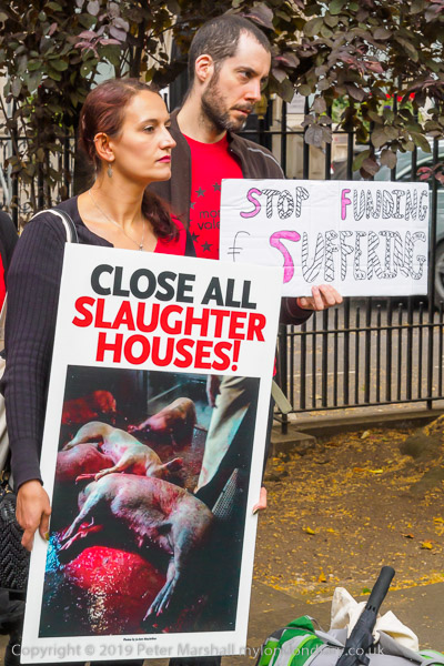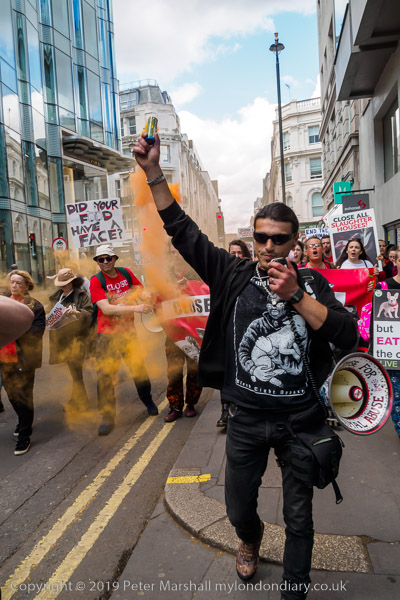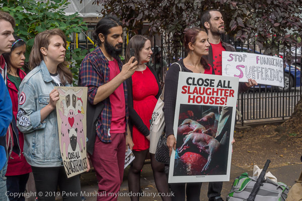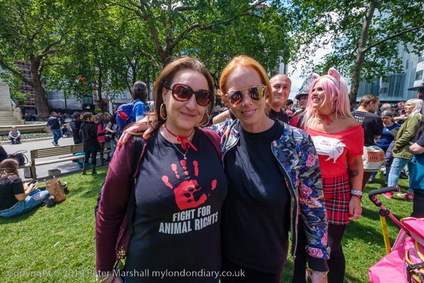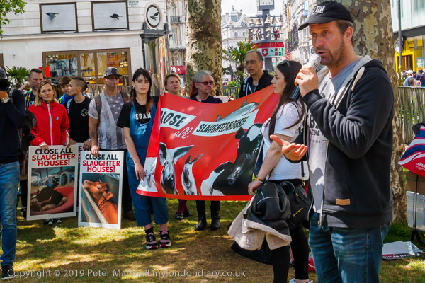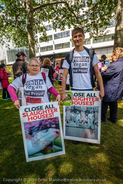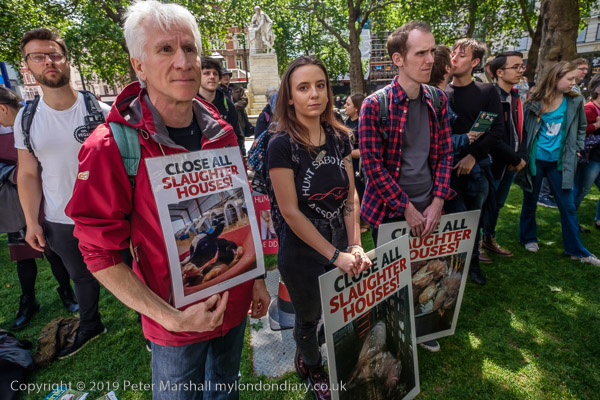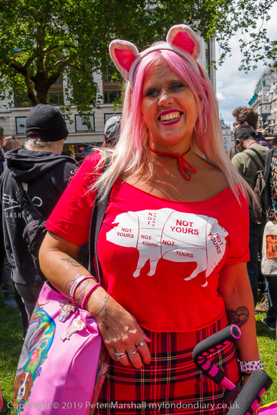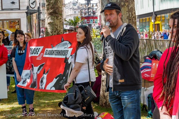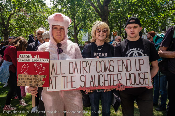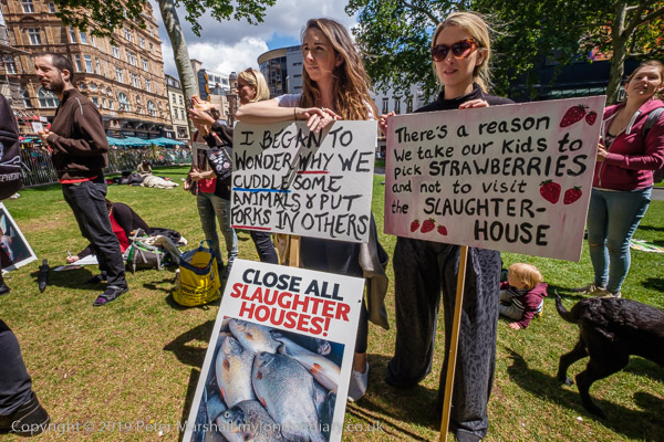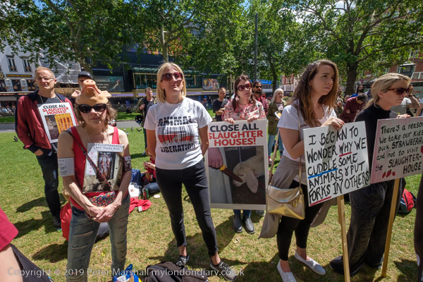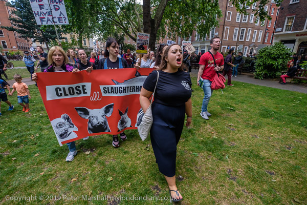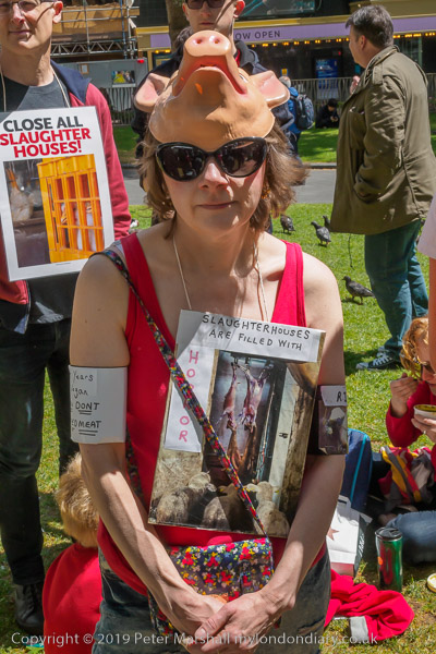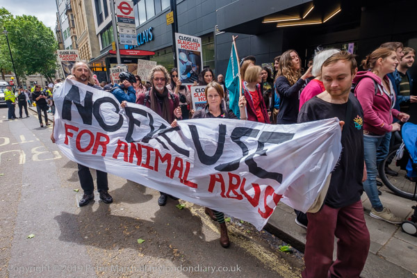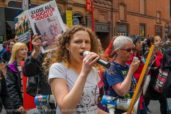and goes up the Charing Cross Road. 'Go Vegan for the Animals' . But