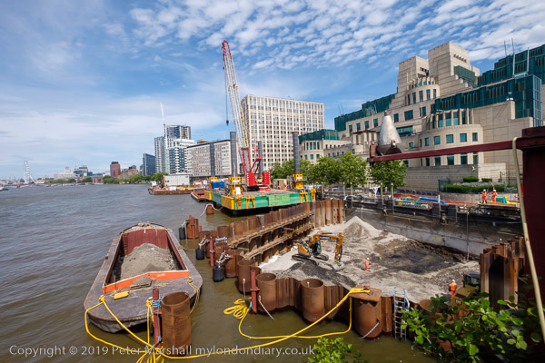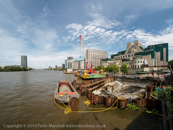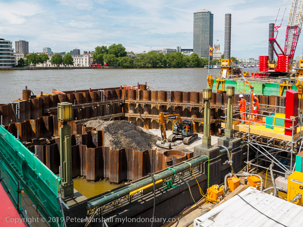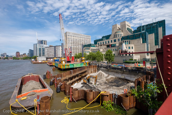 Excavation work by Vauxhall Bridge for London's Supersewer