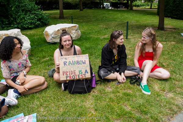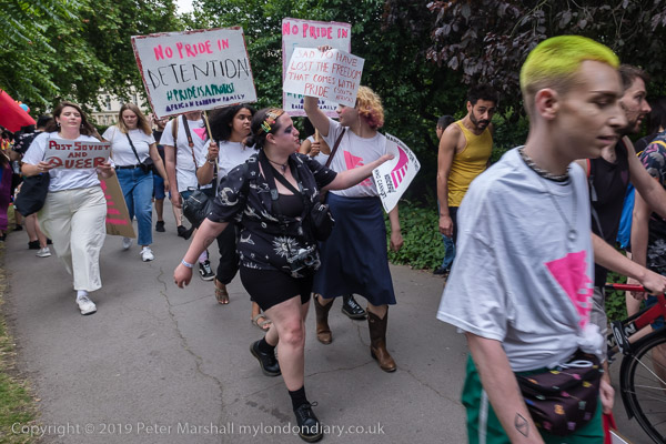 'No Pride in Detention' placard supporting the African Rainbow Family