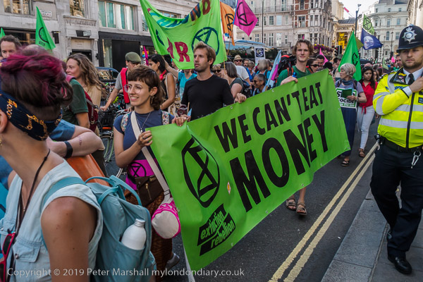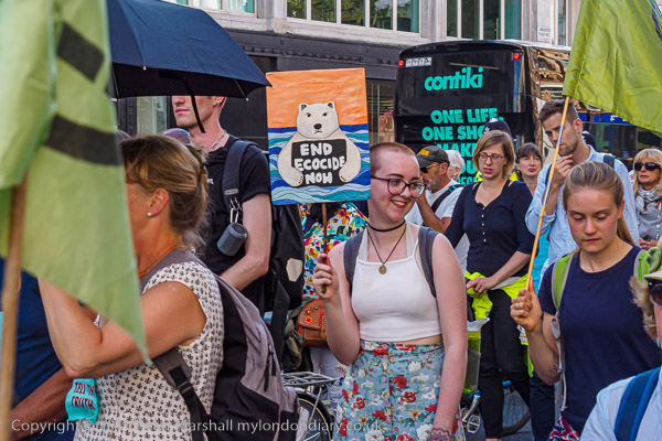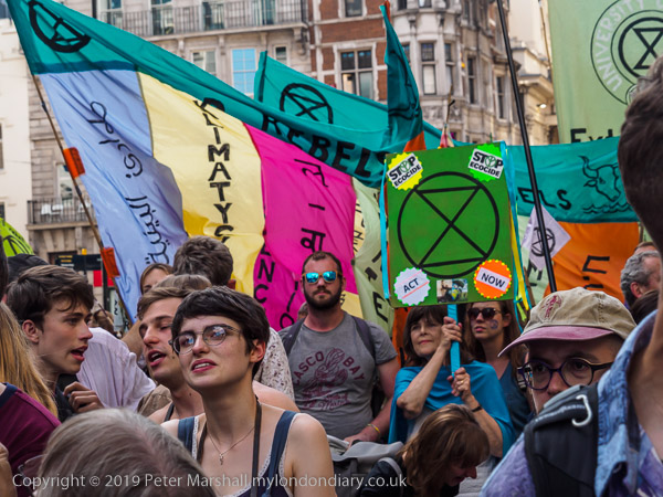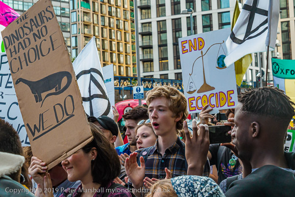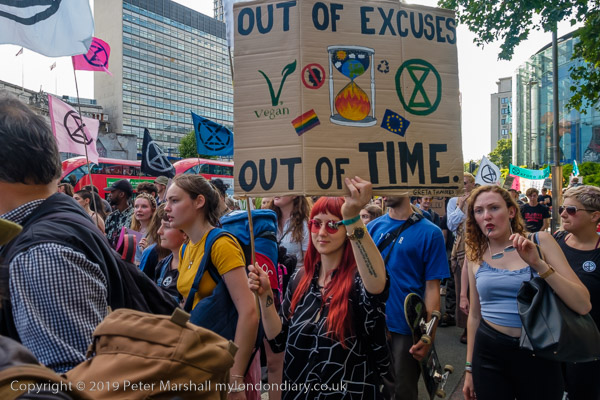 placard. The front of the procession is more or less at the Waterloo Millenium