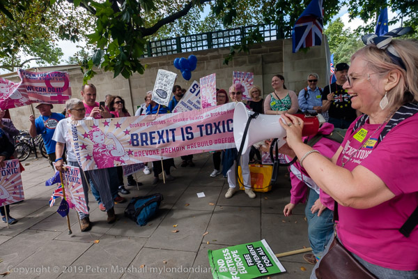 Liberal Democrats with very boring 'Stop Brexit' placards. Surely