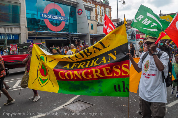 People of African origin met in Windrush Square to demand an end of the Maangamizi, the continuing genocide and ecocide of African peoples and Africa on Afrikan Emancipation Day.