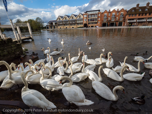 Swans and the odd duck, but no DUCK tour. Eton College Boat Houses
