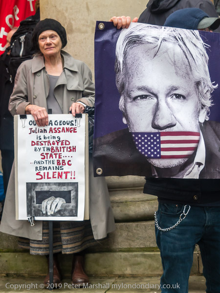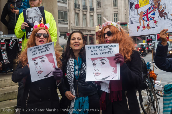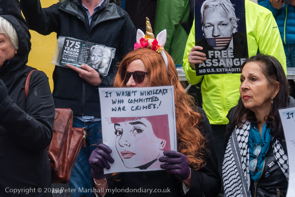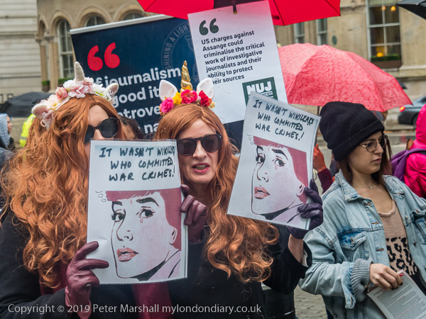 including two 'unicorns' holding posters 'It Wasn't Wikileaks who