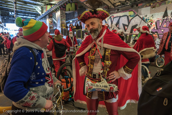 Hundreds of BMX riders from BMX Life and House of Vans London dressed as Santas (with a few elves) meet in the graffiti tunnel at Leake St for Santa Cruise 6, the 6th annual ride to raise funds for Evelina Children’s Heart Organisation.