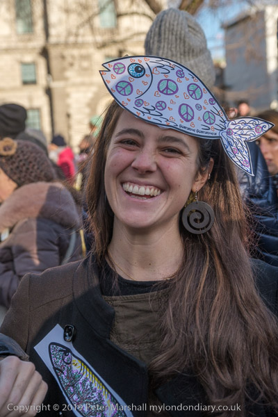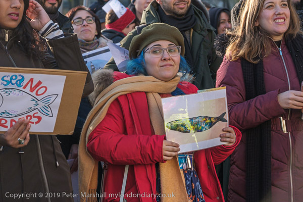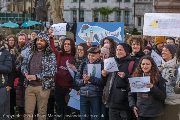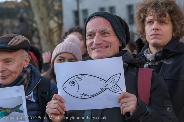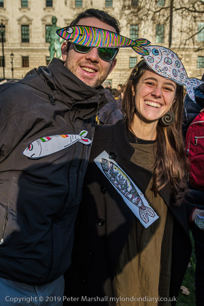 many had posters or placards with fish on them, some more realistic