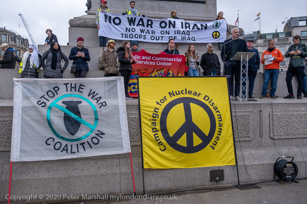 'No War on Iran - No War on Iraq - Get Troops Out!'