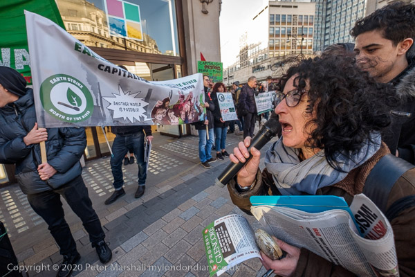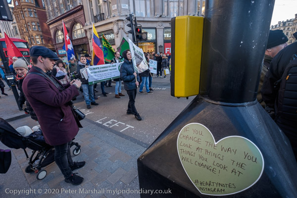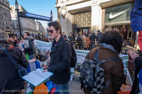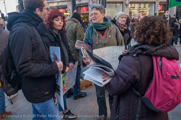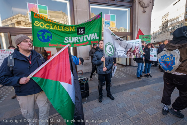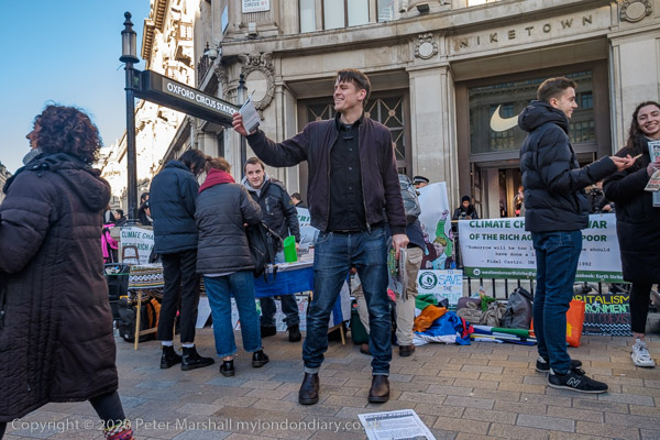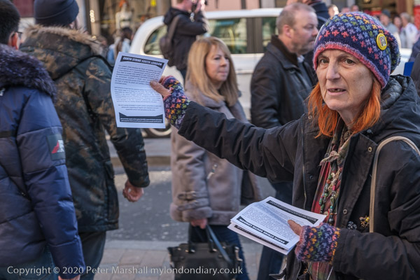 The protest began with a stall at Oxford Circus, where people handed out fliers and collected signatures