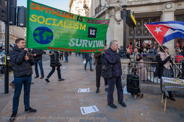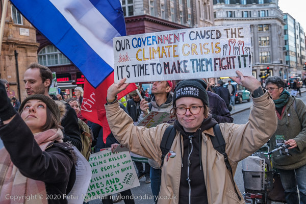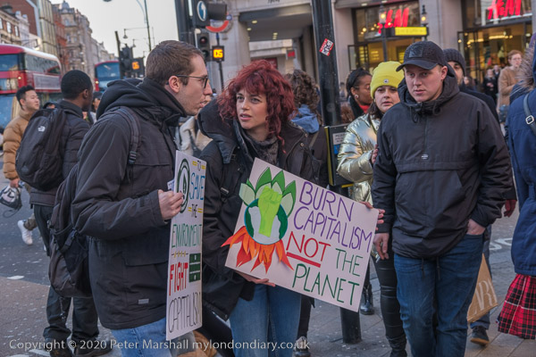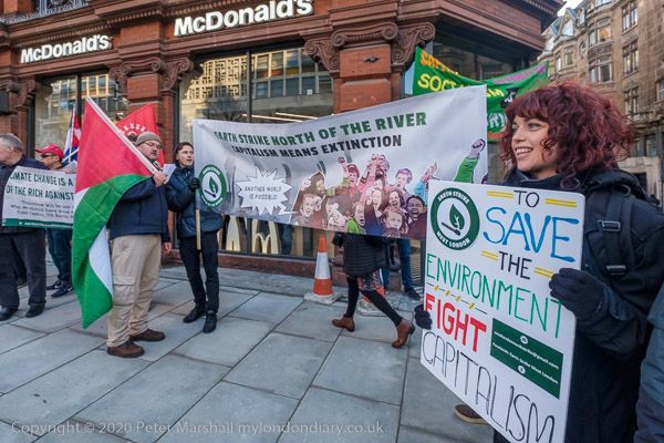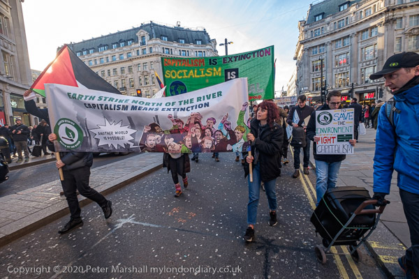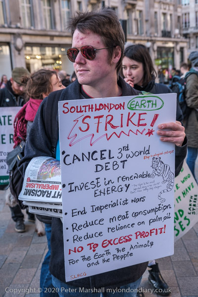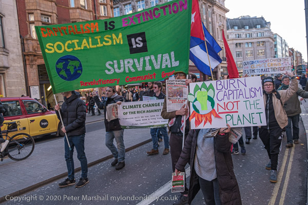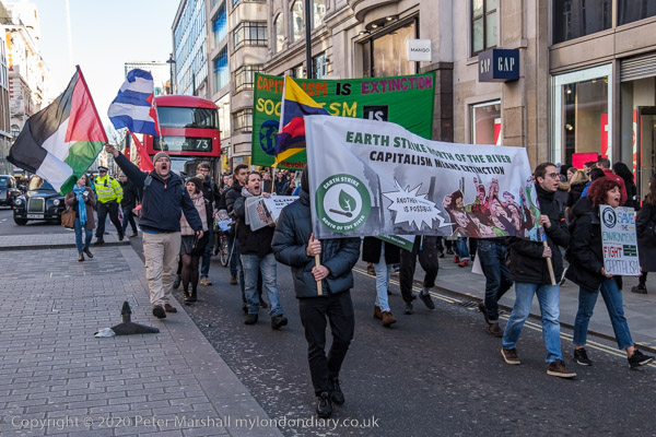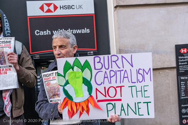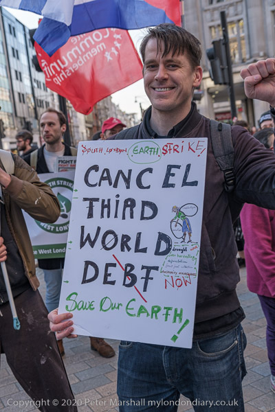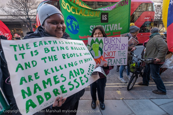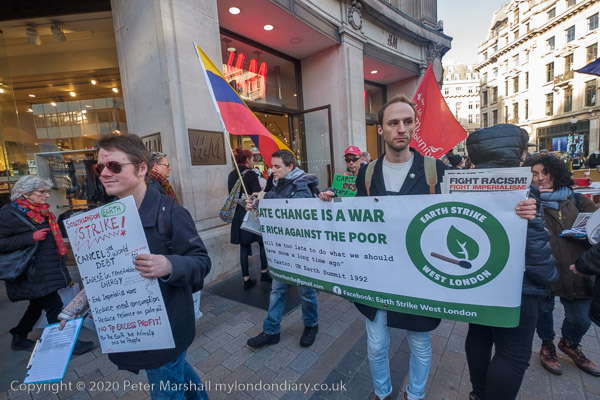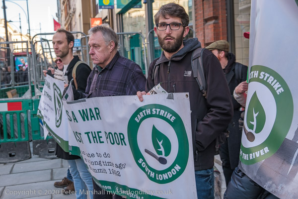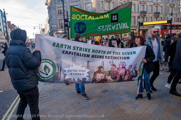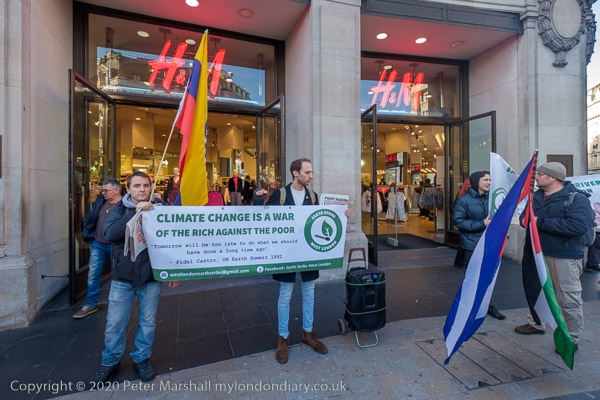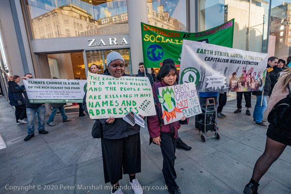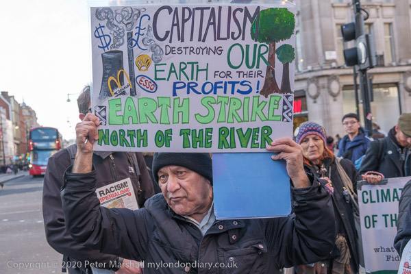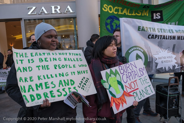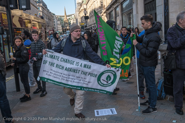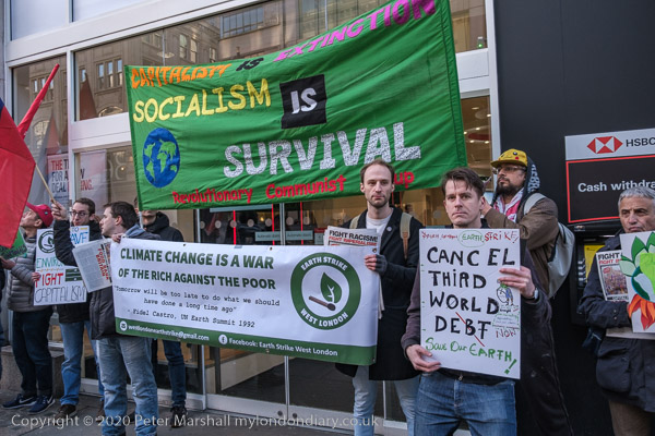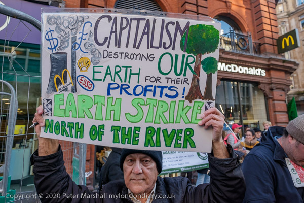 On the protest Earth Strike chanted the slogan on this banner 'Climate Change is a War - Of the Rich against the Poor'