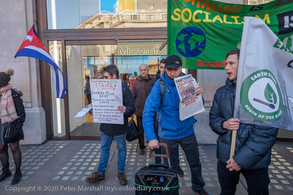 Fight Imperialism' that the Earth Strike protesters were selling.
