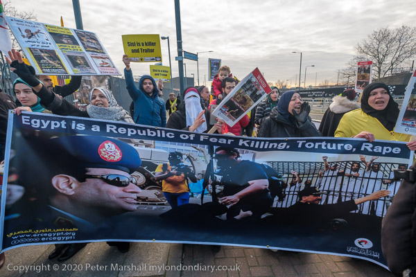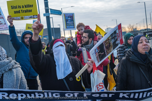 Their banner said 'Egypt is a Republic of Fear Killing, Torture, Rape'