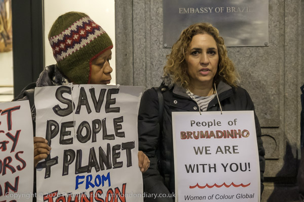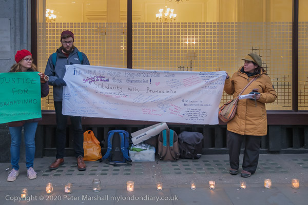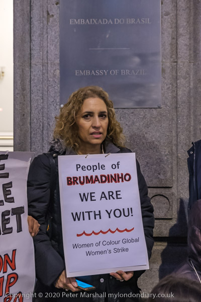and hold the Solidarity with Brumadinho banner in front of the Brazilian