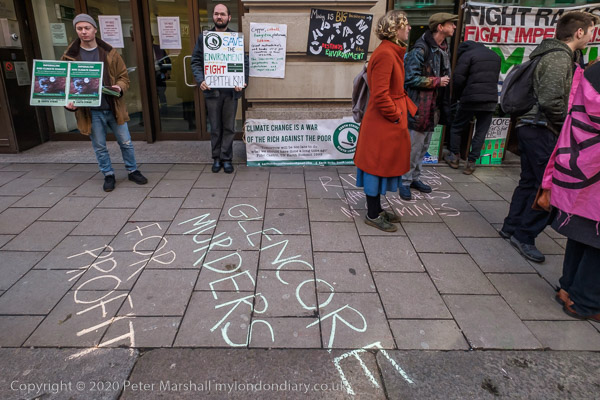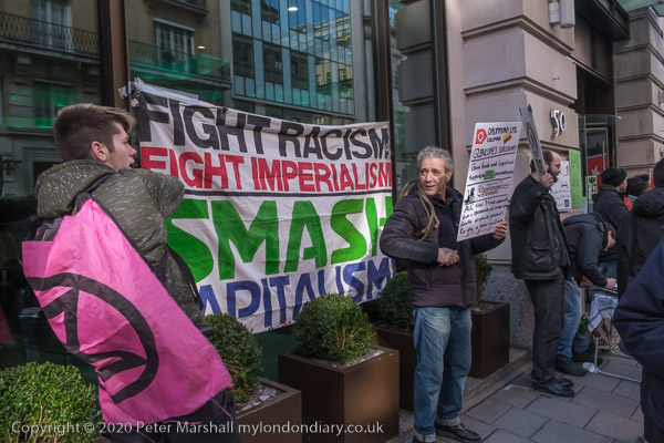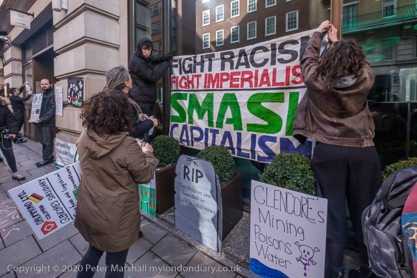 Fixing the Figth Racism Fight Imperialism banner to Glencore's windows