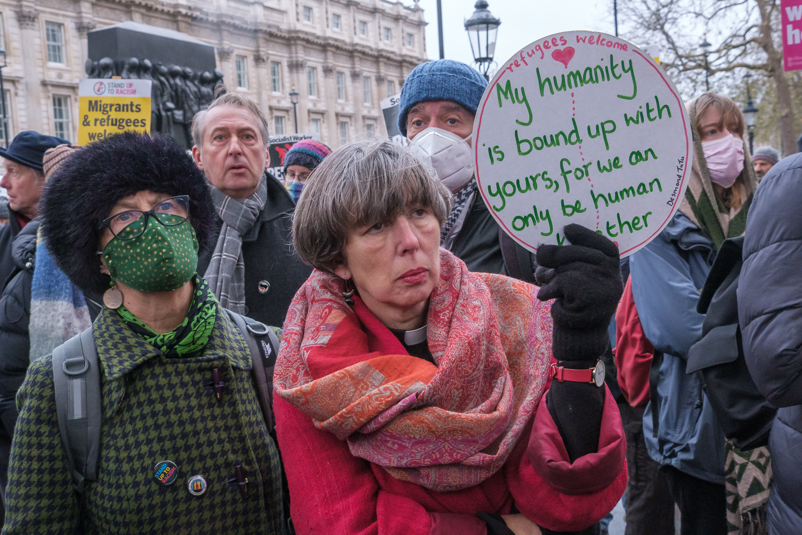 London, protest, English Channel drownings, antiracists, refugee campaigners, human rights campaigners, asylum seekers, refugees, human rights, don't let them drown, refugees welcome, tragic drownings, loss of life, channel, safe passage, legal routes, Care4Calais, Stand Up To Racism, scrap Nationality and Borders Bill, Nationality and Borders Bill, Downing St, racist refugee policy, hostile environment, Priti Patel, Boris Johnson, blood on their hands, war, fleeing war, climate change,